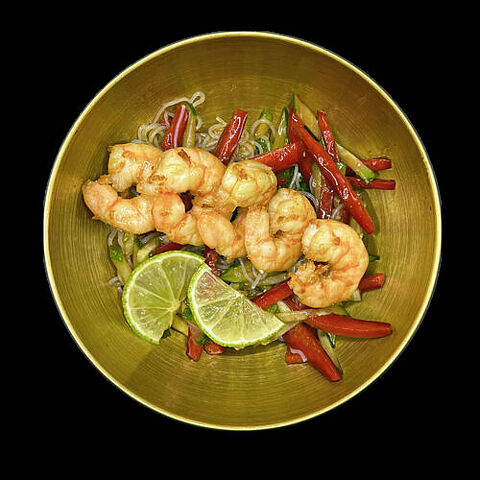 Яркое воплощение свежести и гармонии: фунчоза, креветки, болгарский перец и огурец-салат Анбу станет не только украшением вашего стола, но и истинным наслаждением для ценителей вкуса.